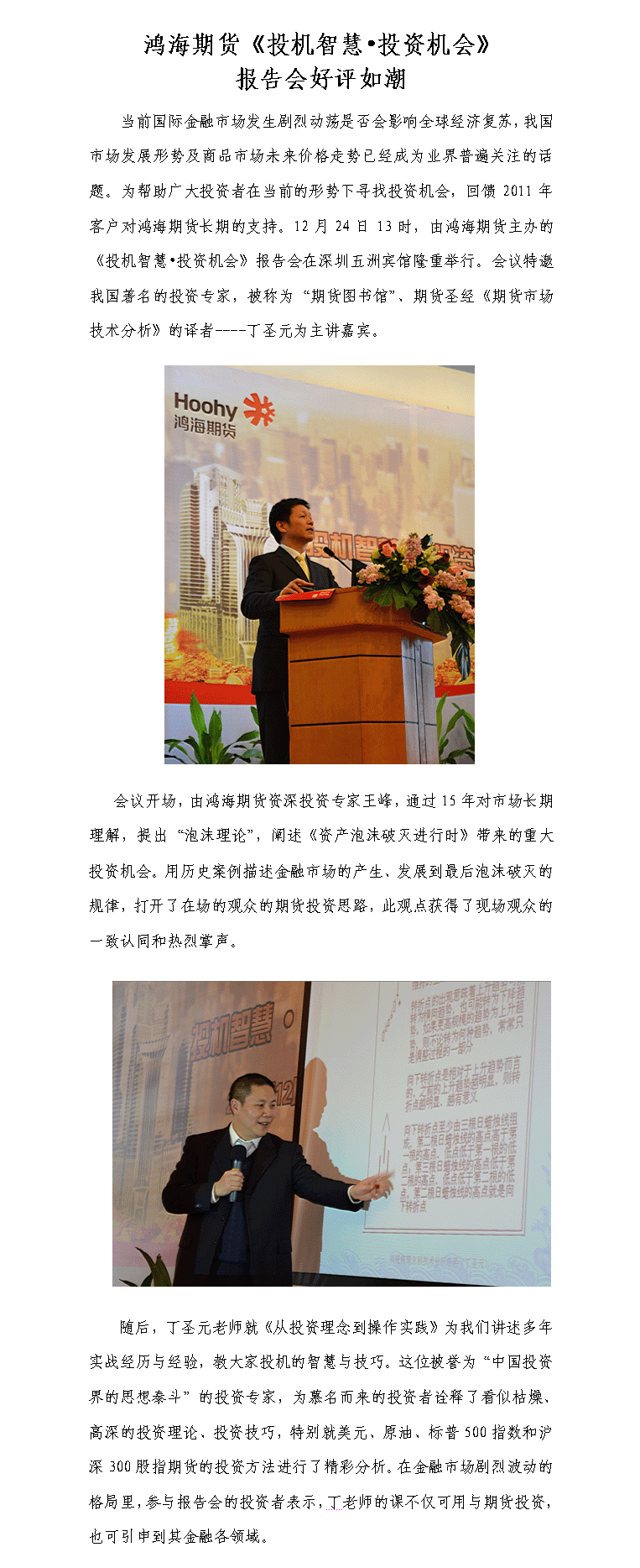 鸿海期货《投机智慧•投资机会》报告会好评如潮