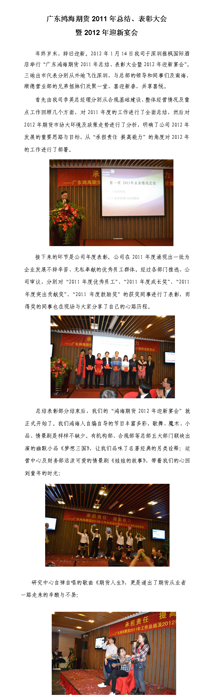 广东鸿海期货2011年总结、表彰大会暨2012年迎新宴会