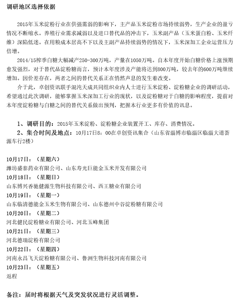 2015不朽情缘免费试玩网站&卓创资讯玉米淀粉和淀粉糖企业调研邀请函