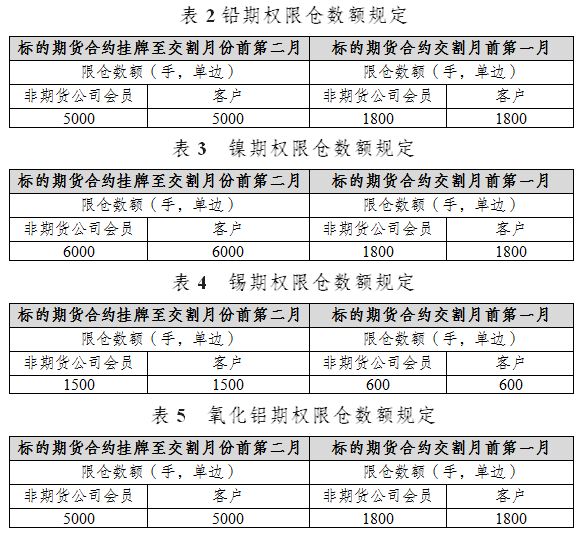 铅、镍、锡和氧化铝期权合约中,合约月份涉及的标的期货持仓量阈值均为10000手(单边)。
