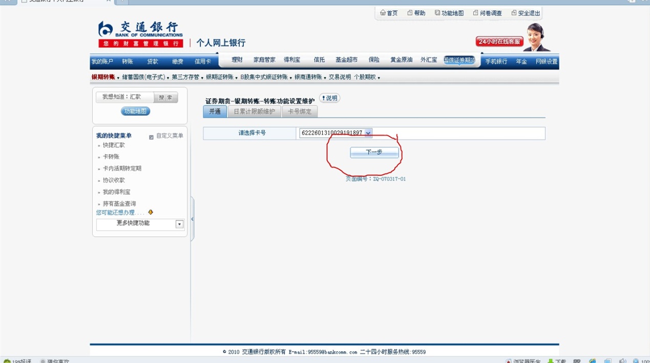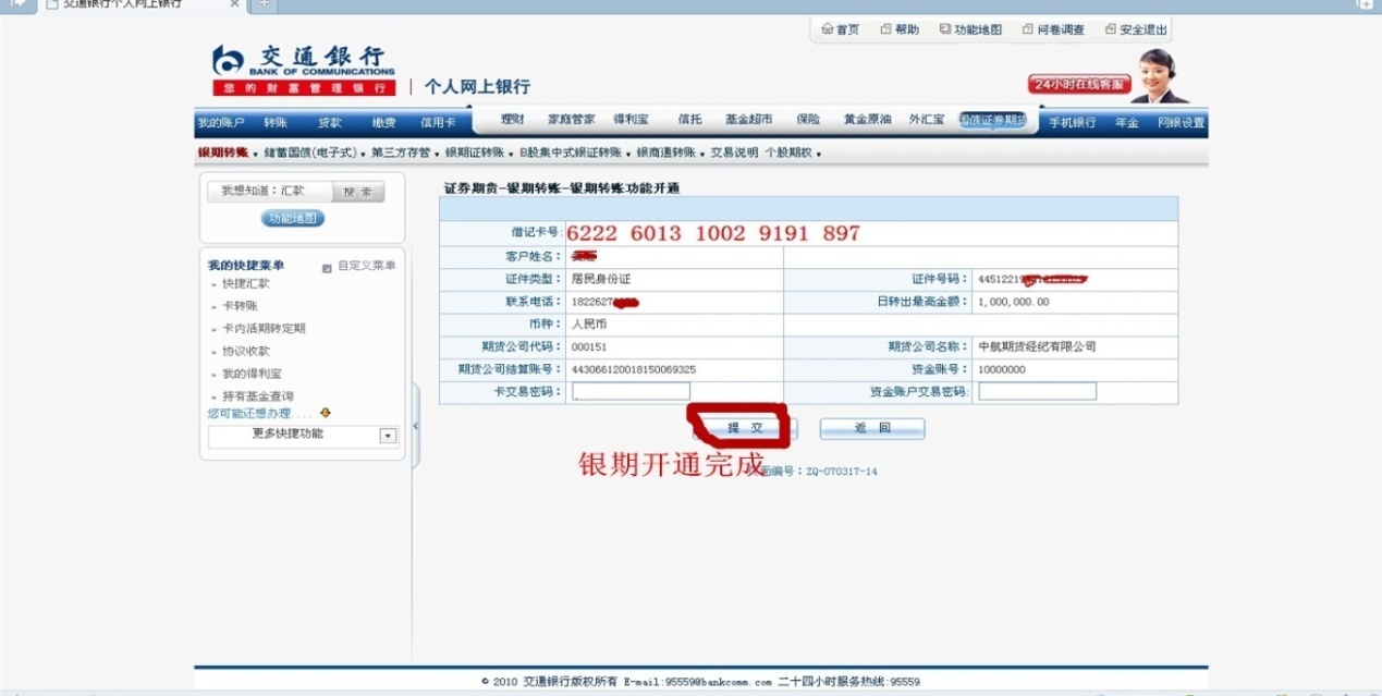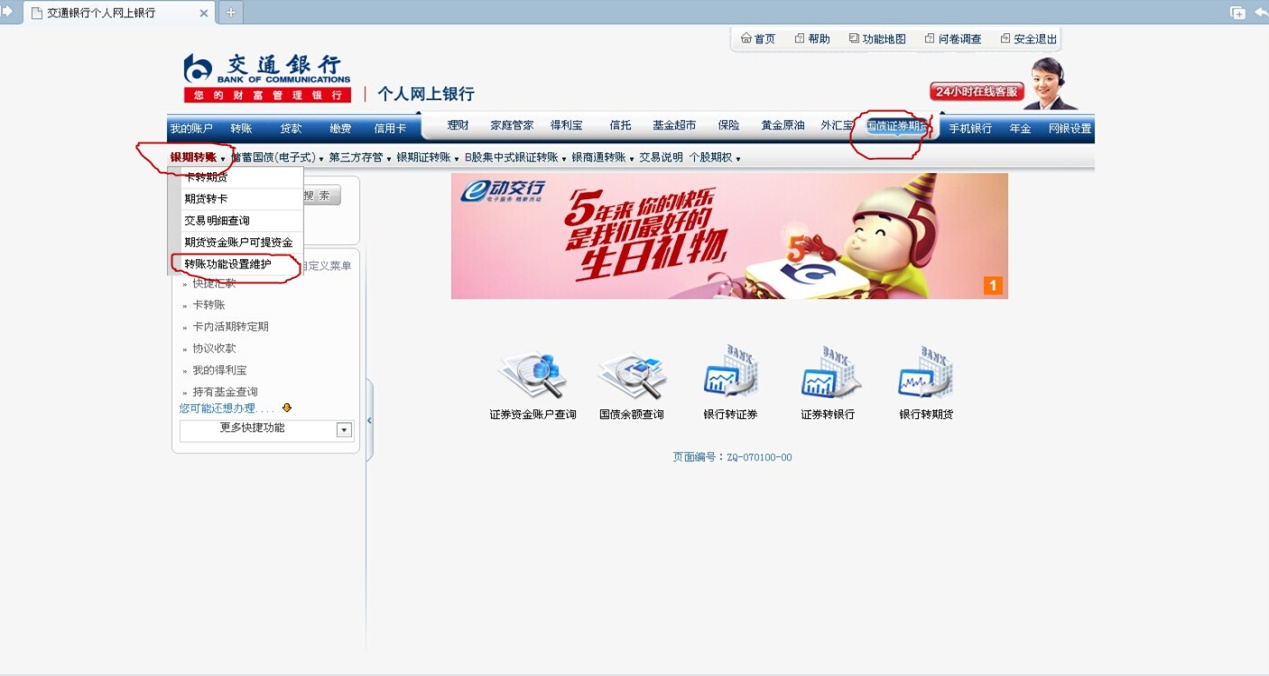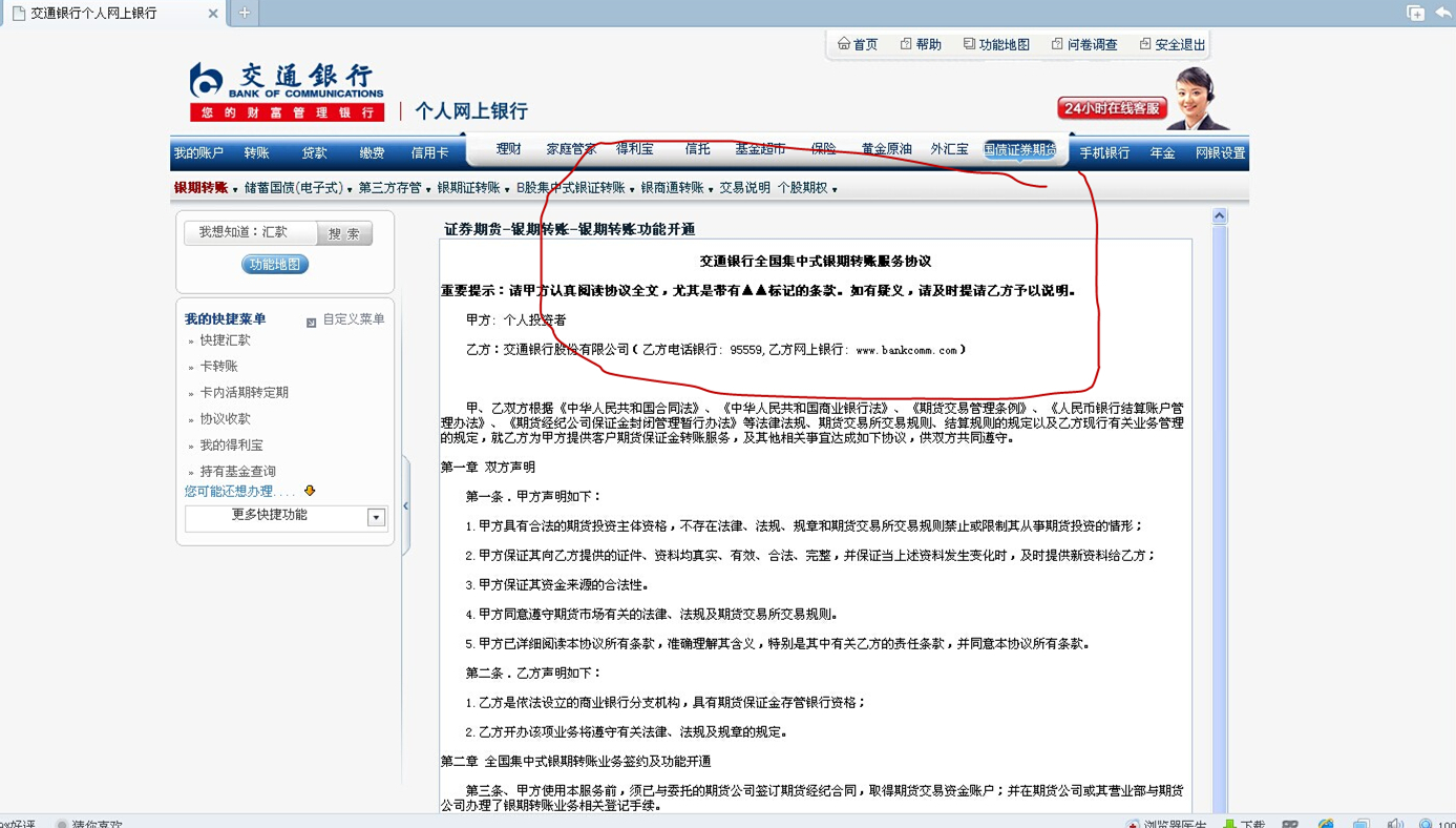 1.登录交行个人网上银行,选择“证券期货”,进入界面: