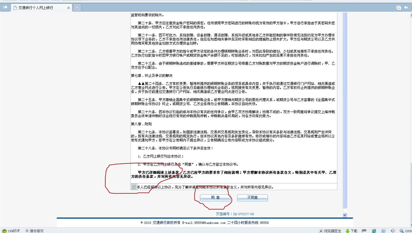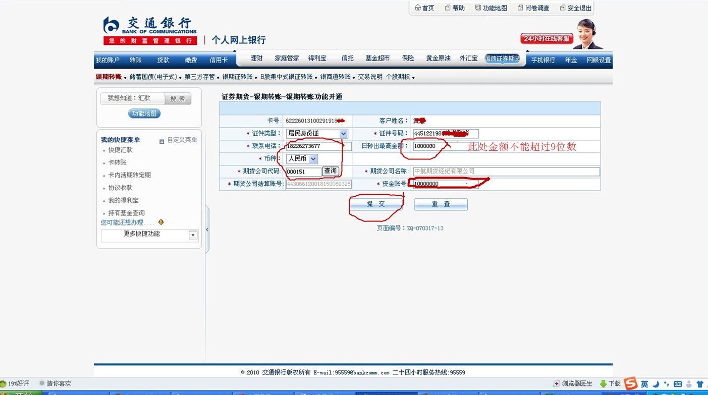 ⑤在银行填写《银期转账业务申请书》、《银期转账协议》并加盖公章