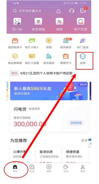 1.登录手机银行,在首页里,点击“全部”