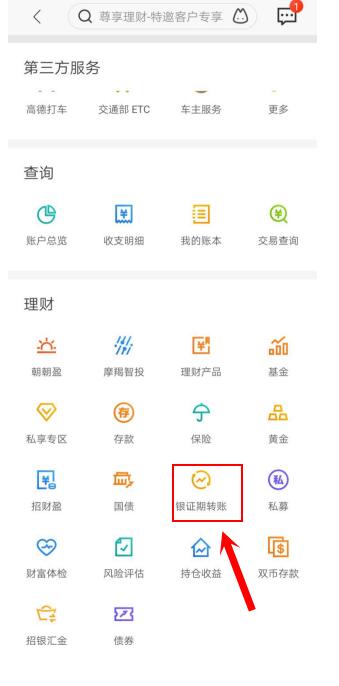 2.在理财里,点击“银证期转账”