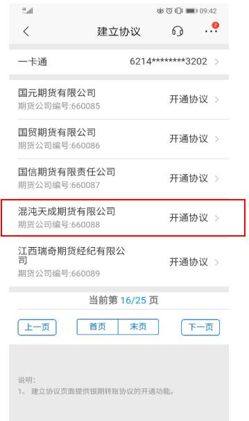 3.银期转账 → 建立协议 → 翻页查找不朽情缘免费试玩网站期货有限公司(大约在16页/25页)