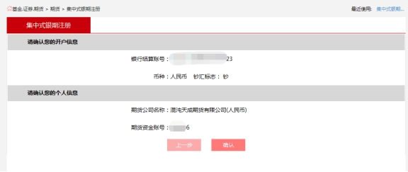 4.确认后显示“注册成功”表示已成功进行银期关联