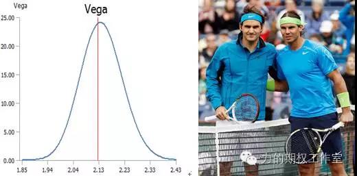 喜欢网球的朋友都知道曾经的“费纳决”。费德勒和纳达尔是两位伟大的球员,然而他们所经历的伤病历程却截然不同。费德勒人称“瑞士快车”,几乎很少遭受伤病困扰,一年从头到尾基本都能如约参赛,而纳达尔就不同了,法网过后经常因旧伤复发而匆匆离去(豆粉们请见谅)。如果为他们买个一年期的伤病保险,你觉得两人的保险费差距大吗?答案是肯定的。可是极端地,如果为他们仅买个一天的伤病保险,两人的保险费差距还会大吗?我想两人的保险费之差就会很小了吧。这就说明Vega会随着期权到期日临近而整体趋于0。