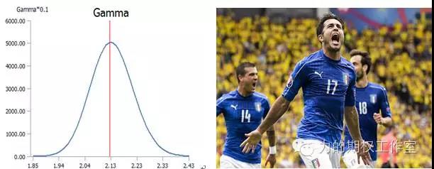 在实际交易中,Gamma可以理解为标的价格变化对盈亏结果的重要性。也就是说,Gamma越大,股价稍微动一动,你的盈亏变化就很明显。很容易想像,实值、平值、虚值的期权哪个Gamma最大?自然是平值!就像今年充满“戏剧性”的欧洲杯,经常在处于平局的比赛中,突然某一方进了一球,那对比赛结果的影响力是很致命的,这种致命有个专用名词,就叫做“绝杀”。