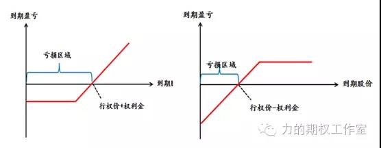 从这两个图的比较可以看出,对于同一个行权价、同一天到期的认购和认沽期权,当到期股价处在0到“行权价加上权利金”的区域(记为D1)时,买认购的交易者最终亏钱,而当到期股价处在0到“行权价减去权利金”的区域(记为D2)时,卖认沽的交易者最终亏钱,不论股价服从什么分布,D2是D1的真子集,股价到期落在D2的概率总归要小等于在D1的概率,所以买认购比卖认沽更容易亏钱,买认购的胜率更低!