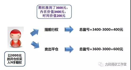 不过,在实际操作过程中,美式商品期权很少会提前行权,那是因为期权的价格=内在价值+时间价值,如果平仓的话,还可以赚取一部分时间价值,但如果提前行权的话,您就等于只获得了内在价值,放弃了时间价值的收入。人都不希望赚的少,那自然提前行权的人就很少了。下面的樱木花道同学的例子也有助于您直观的了解到这一点。