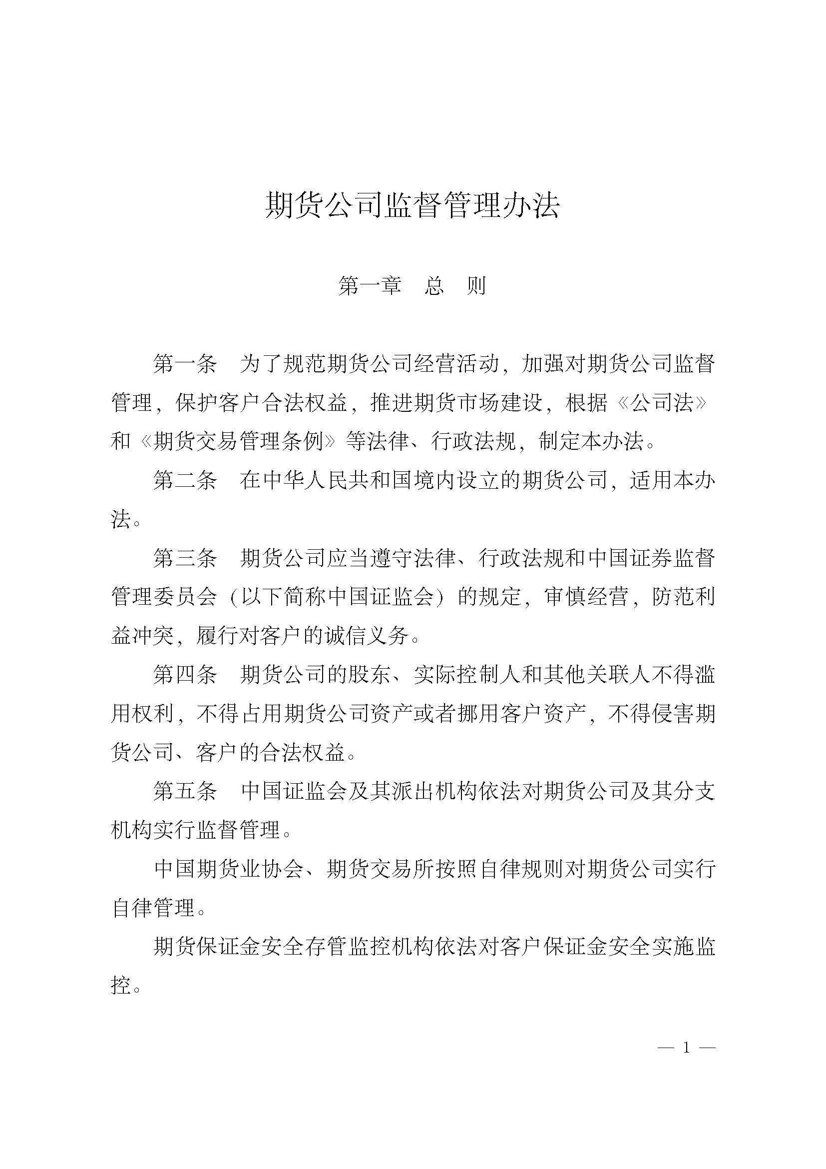 中国证券监督管理委员会令第155号期货公司监督管理办法